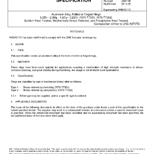 This specification covers an aluminum alloy in the form of rolled or forged rings.