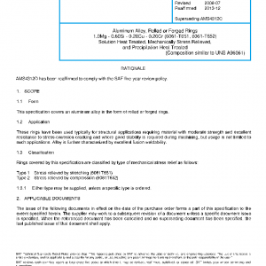This specification covers an aluminum alloy in the form of rolled or forged rings.