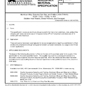 This specification covers an aluminum alloy procured in the form of extruded bars, rods, and profiles (shapes) with cross-sectional area of 12 square inches (77 cm2) maximum and circle size of 10 inches (254 mm) maximum.