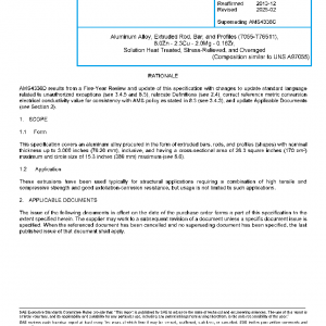 This specification covers an aluminum alloy procured in the form of extruded bars, rods, and profiles (shapes) with nominal thickness up to 3.000 inches (76.20 mm), inclusive, and having a cross-sectional area of 26.3 square inches (170 cm2) maximum and circle size of 15.3 inches (389 mm) maximum (see 8.6).