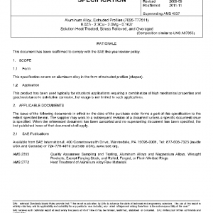 This specification covers an aluminum alloy in the form of extruded profiles (shapes).