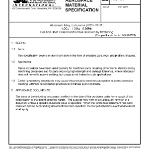Aluminum Alloy, Extrusions (2026-T3511) 4.0Cu – 1.3Mg – 0.60Mn Solution Heat Treated and Stress Relieved by Stretching