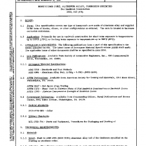 This specification covers one type of honeycomb core made of aluminum alloy and supplied in the form of blocks, slices, or other configurations as ordered. The core is treated to increase corrosion resistance.