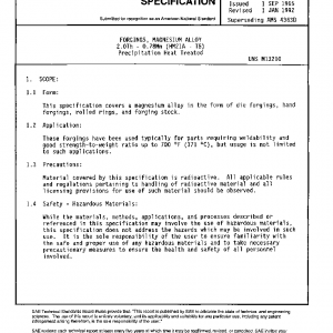 This specification covers a magnesium alloy in the form of die forgings, hand forgings, rolled rings, and forging stock.