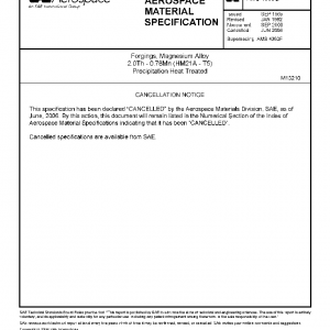 Forgings, Magnesium Alloy, 2.0Th – 0.78Mn (HM21A – T5), Precipitation Heat Treated (Cancelled Jun 2006)