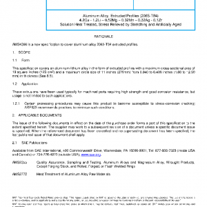 This specification covers an aluminum-lithium alloy in the form of extruded profiles with a maximum cross-sectional area of 19 square inches (123 cm2) and a maximum circle size of 11 inches (279mm) from 0.040 to 0.499 inches (1.00 to 12.50 mm) in thickness (See 8.5).
