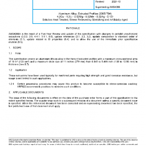 This specification covers an aluminum-lithium alloy in the form of extruded profiles with a maximum cross-sectional area of 19 in2 (123 cm2) and a maximum circle size of 11 inches (279 mm) from 0.040 to 0.499 inch (1.00 to 12.50 mm) in thickness (see 8.7).