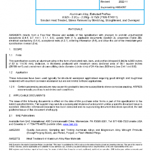 This specification covers an aluminum alloy in the form of extruded rods, bars, and profiles (shapes) 0.040 to 4.500 inches (1.02 to 114.30 mm), inclusive, in thickness produced with maximum cross sectional area of 56.1 square inches (36199 mm2) and a maximum circumscribing circle diameter (circle size) of 24.4 inches (620 mm) (see 2.4.1 and 8.6).