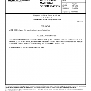 Magnesium Alloy, Sheet and Plate, 3.2Th – 0.70Zr, Cold Rolled and Partially Annealed(Cancelled Oct 2006)