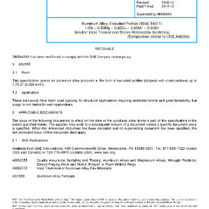 This specification covers an aluminum alloy procured in the form of extruded profiles (shapes) with cross-sections up to 7.75 in2 (5 000 mm2).