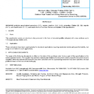 This specification covers an aluminum alloy procured in the form of extruded profiles (shapes) with cross-sections up to 7.75 square inches (5000 mm2).