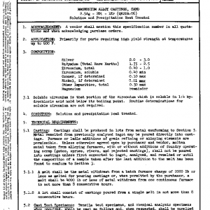 MAGNESIUM ALLOY CASTINGS, SAND 2.5Ag – 2Di – 1Zr (QE22A-T6) Solution and Precipitation Heat Treated