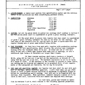 MAGNESIUM ALLOY CASTINGS (Sand) 6 Al 3 Zn (Solution)