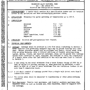 MAGNESIUM ALLOY CASTINGS. SAND 6Al – 3Zn (AZ63A-T6) Solution and Precipitation Treated