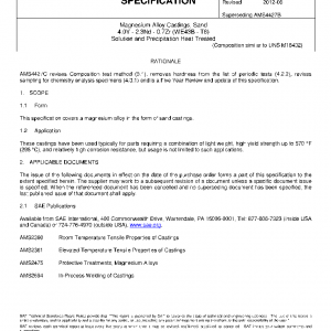 This specification covers a magnesium alloy in the form of sand castings.