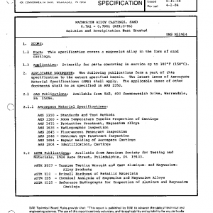 MAGNESIUM ALLOY CASTINGS, SAND 8.7Al – 0.70Zn (AZ91C-T6) Solution and Precipitation Heat Treated