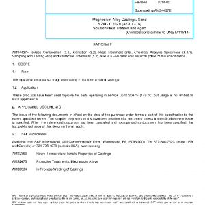 Magnesium Alloy Castings, Sand 8.7Al – 0.70Zn (AZ91C-T6) Solution Heat Treated and Aged