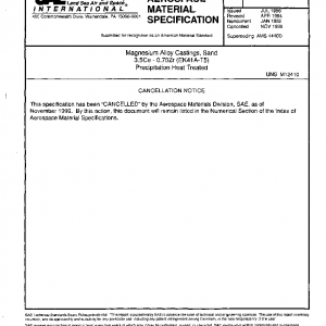 This specification covers a magnesium alloy in the form of sand castings.Primarily for parts operating in service in the range 300 degrees – 500 degrees F (150 degrees – 260 degrees C).