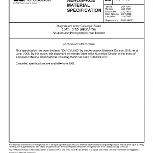 Magnesium Alloy Castings, Sand, 3.3Th – 0.75Zr (HK31A-T6), Solution and Precipitation Heat Treated (Cancelled Jun 2006)