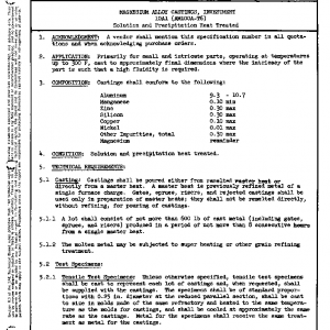 MAGNESIUM ALLOY CASTINGS, INVESTMENT 10Al (AM100A-T6) Solution and Precipitation Heat Treated