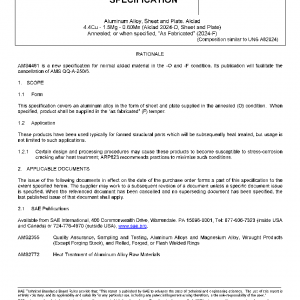 This specification covers an aluminum alloy in the form of sheet and plate supplied in the annealed (O) condition. When specified, product shall be supplied in the “as fabricated” (F) temper.