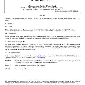 This specification covers an aluminum alloy in the form of alclad sheet and plate supplied in the -T3/-T351 temper.