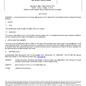Aluminum Alloy, Plate (7255-T7751) 8.0Zn – 2.3Cu – 2.0Mg – 0.12Zr Solution Heat Treated, Stress Relieved, and Overaged