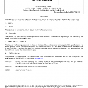 Aluminum Alloy, Sheet 4.0Cu – 1.0Li – 0.40Mg – 0.35Ag – 0.13Zr (2195-T8) Solution Heat Treated, Cold Worked, and Artificially Aged