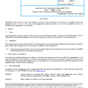 This specification covers an aluminum alloy in the form of extruded profiles with a maximum cross-sectional area of 25 in2 (160.29 cm2) and nominal thicknesses from 0.250 to 2.500 inch, inclusive (6.3 to 63.50 mm, inclusive) (see 8.7).
