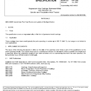 This specification covers a magnesium alloy in the form of permanent mold castings.