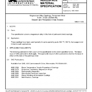 Magnesium Alloy Castings, Permanent Mold 9.0Al – 2.0Zn (AZ92A-T6) Solution and Precipitation Heat Treated