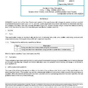 This specification covers an aluminum alloy in the form of extruded bars, rods, wire, profiles, and tubing produced with cross-sectional area of 32 square inches (206 cm2), maximum (see 8.6).