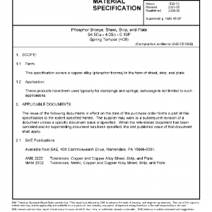 This specification covers a copper alloy (phosphor bronze) in the form of sheet, strip, and plate.