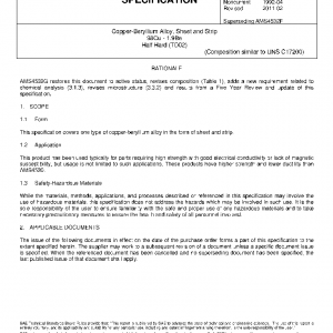 Copper-Beryllium Alloy, Sheet and Strip 98Cu – 1.9Be Half Hard (TD02)(NONCURRENT Apr 1992)