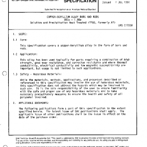 This specification covers a copper-beryllium alloy in the form of bars and rods.