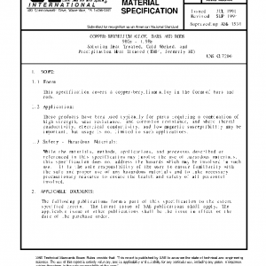 This specification covers a copper-beryllium alloy in the form of bars and rods.