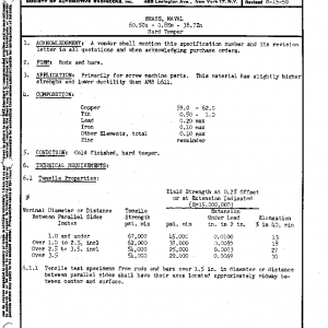BRASS, NAVAL 60.5Cu – 0.8Sn – 38.7Zn Hard Temper