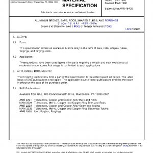 This specification covers an aluminum bronze alloy in the form of bars, rods, shapes, tubes, forgings, and forging stock.