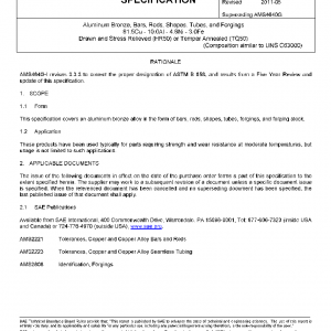 Aluminum Bronze, Bars, Rods, Shapes, Tubes, and Forgings 81.5Cu – 10.0Al – 4.8Ni – 3.0Fe Drawn and Stress Relieved (HR50) or Temper Annealed (TQ50)