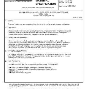 This specification covers a copper-beryllium alloy in the form of bars, rods, shapes, and forgings.