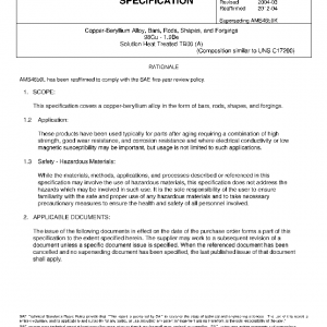 This specification covers a copper-beryllium alloy in the form of bars, rods, shapes, and forgings.