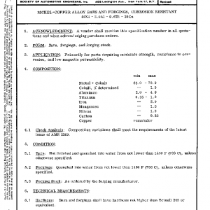 NICKEL-COPPER ALLOY BARS AND FORGINGS, CORROSION RESISTANT 66Ni – 3.0A1 – 0.6Ti – 30Cu