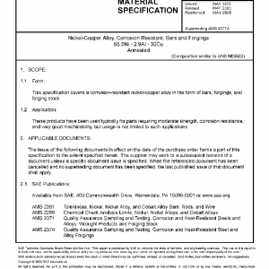 This specification covers a corrosion-resistant nickel-copper alloy in the form of bars, forgings, and forging stock.