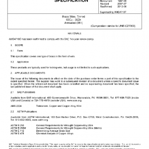 Brass Wire, Tinned 65Cu – 35Zn Annealed (061)(NONCURRENT Mar 1997)