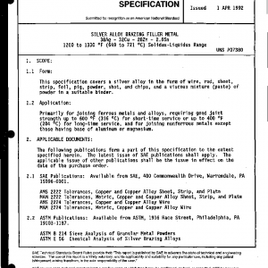 This specification covers a silver alloy in the form of wire, rod, sheet, strip, foil, pig, powder, shot, and chips, and a viscous mixture (paste) of powder in a suitable binder.