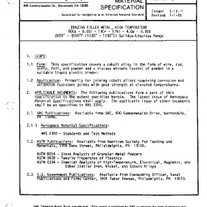 BRAZING FILLER METAL, HIGH TEMPERATURE 50Co – 8.0Si – 19Cr – 17Ni – 4.0W – 0.80B 2050° – 2100°F (1120° – 1150°C) Solidus-Liquidus Range