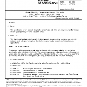 Cobalt Alloy, High Temperature Brazing Filler Metal 50Co – 8.0Si – 19Cr – 17Ni – 4.0W – 0.80B 2050 to 2100 °F (1121 to 1149 °C) Solidus-Liquidus Range