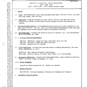 This specification covers a gold-palladium-nickel alloy in the form of wire, rod, sheet, strip, pig, powder, shot, and chips.