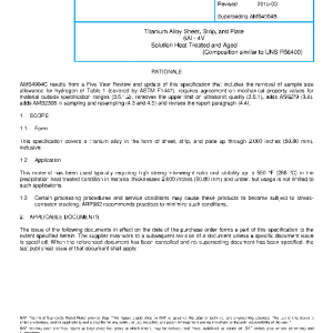 Titanium Alloy Sheet, Strip, and Plate 6Al – 4V Solution Heat Treated and Aged