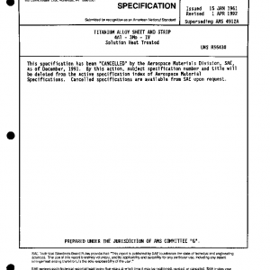 This specification has been “CANCELLED” by the Aerospace Materials Division, SAE, as of December, 1991.